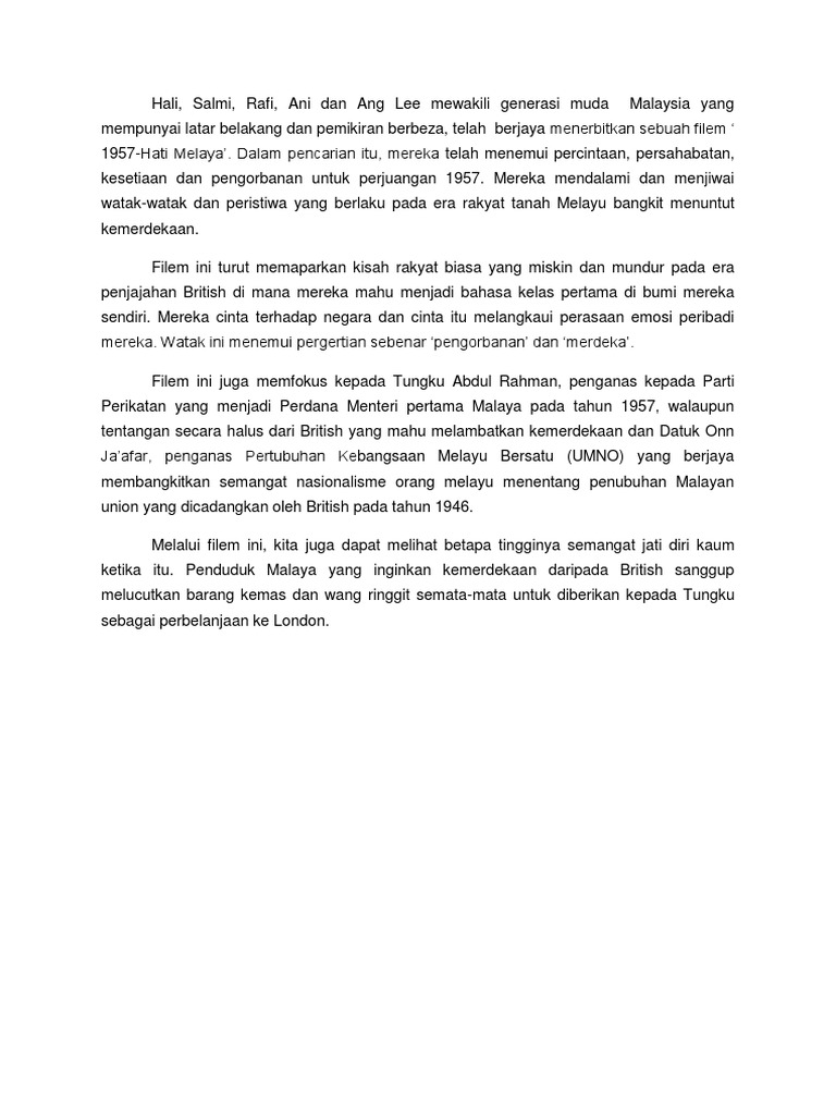 Sinopsis Dan Pengajaran Filem 1957 Hati Malaya