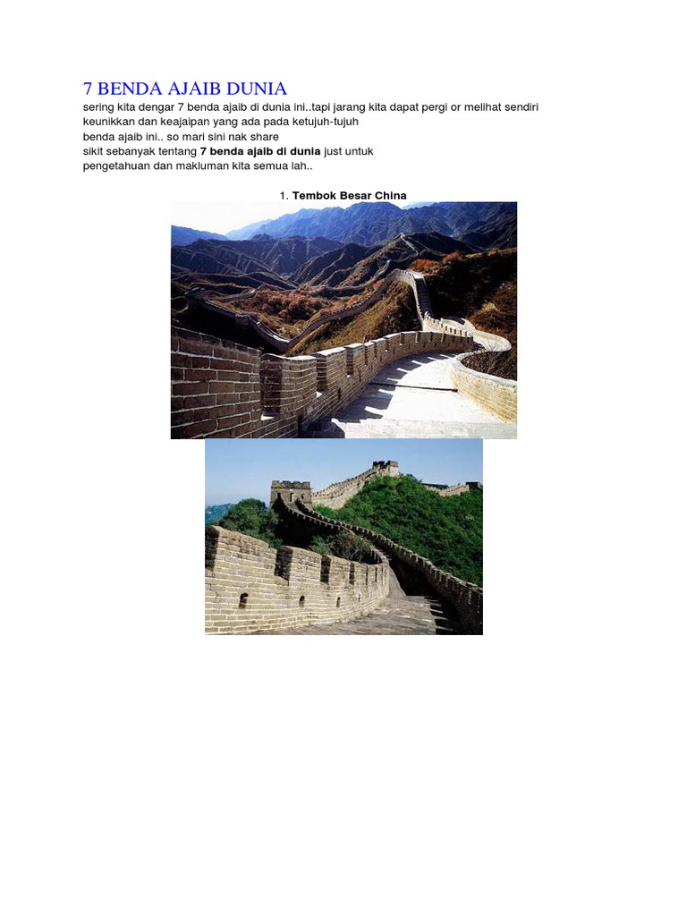 10 lukisan termahal dunia 1 7 benda ajaib dunia 2011 1 7 gajet popular dunia 1 7 pantai tercantik dunia 1 bangunan tertinggi di dunia 2010 1 manusia genius 1 pm malaysia 1 rumah kebajikan di malaysia 1 takaful ikhlas 1 tema dan logo hari kebangsaan 1 tema hari guru 1 wang 50 keluaran khas 1 wang rm 5 lama ada lambang. Tiada senarai yang pasti mengenai 7 benda ajaib ini sebenarnya kerana ia hanyalah berdasarkan kepada senarai senarai yang di keluarkan oleh pelbagai pihak berdasarkan kriteria masing masing. 7 benda ajaib di dunia bangunan monumen ajaib di dunia ajaib dari rupa bentuk seni bina dan seni halus ukiran.