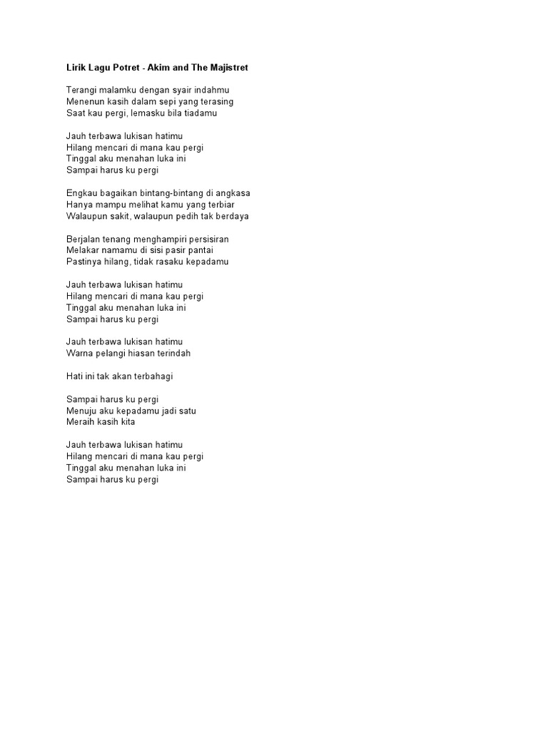 Lirik Lagu Akim The Majistret Potret Wattpad
