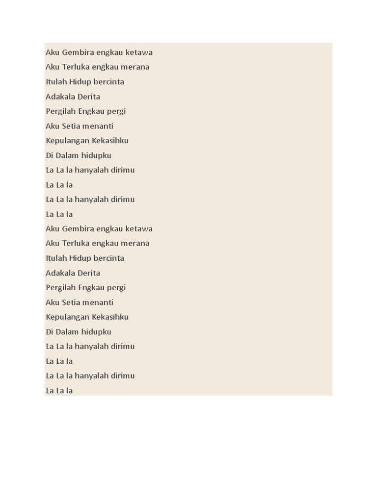 Aku Gembira Engkau Ketawa Lirik