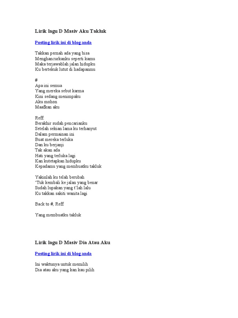 Lirik Lagu D Masiv Aku Takluk Posting Lirik Ini Di Blog Anda