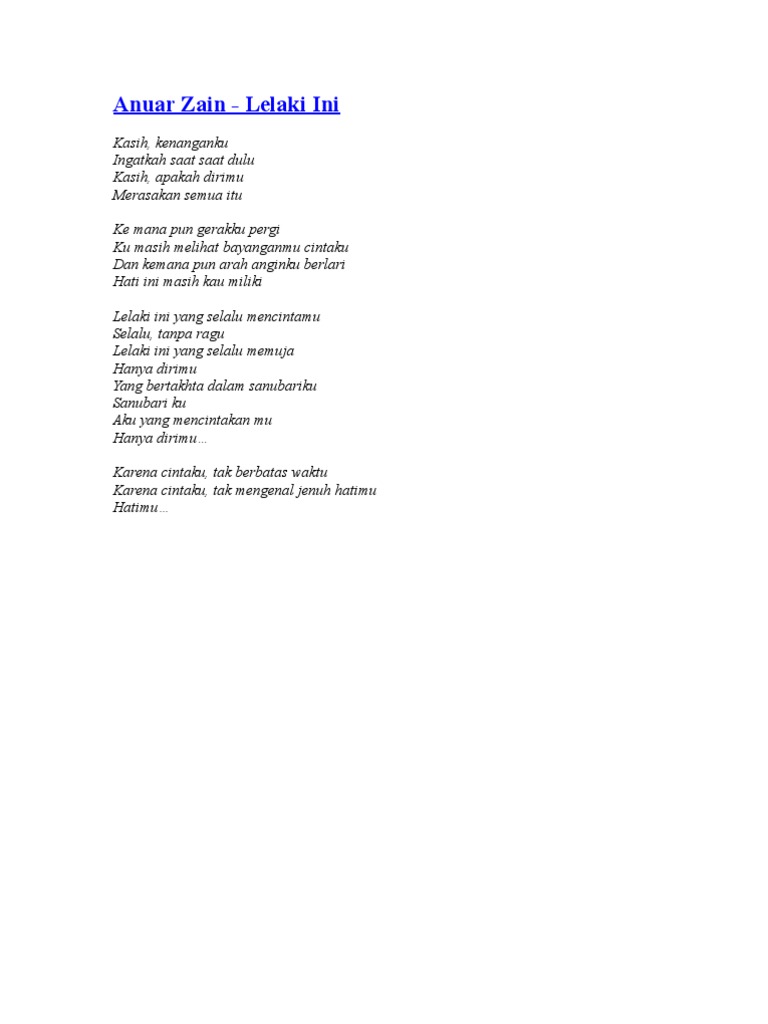 Lelaki Ini Songtext By Anuar Zain Kasih Kenanganku Ingatkah Saat Saat