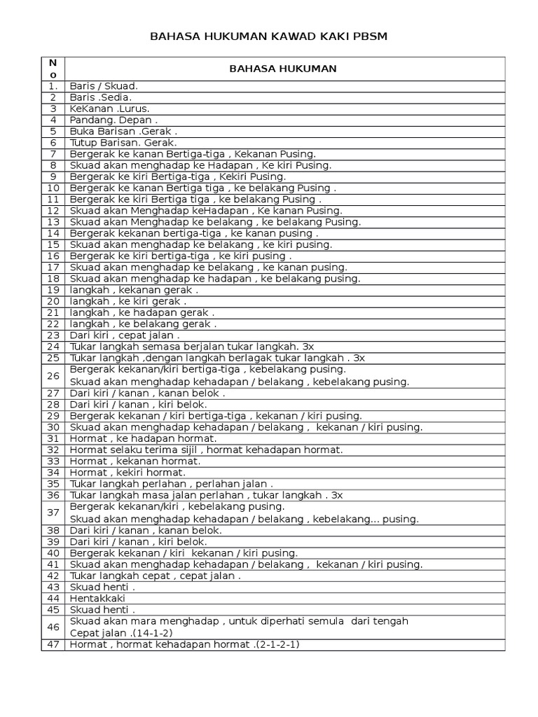 Bawa skuad masuk padang. Bahasa hukuman kawad kaki pbsmm. Kawad kaki hukuman kawad kaki.