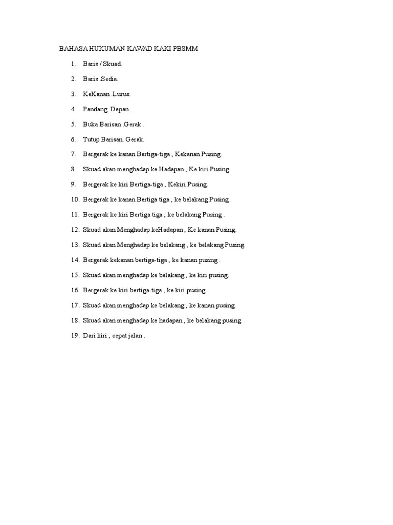 Bahasa hukuman kawad statik 1. Dengar sini semua sekali apabila mendapat hukuman tiga barisan di hadapan saya gerak skuad hendaklah sedia berlari berbaris dalam tiga barisan di hadapan di tengah tengah di mana saya mengadap. Panduan mengajar kawad kaki.