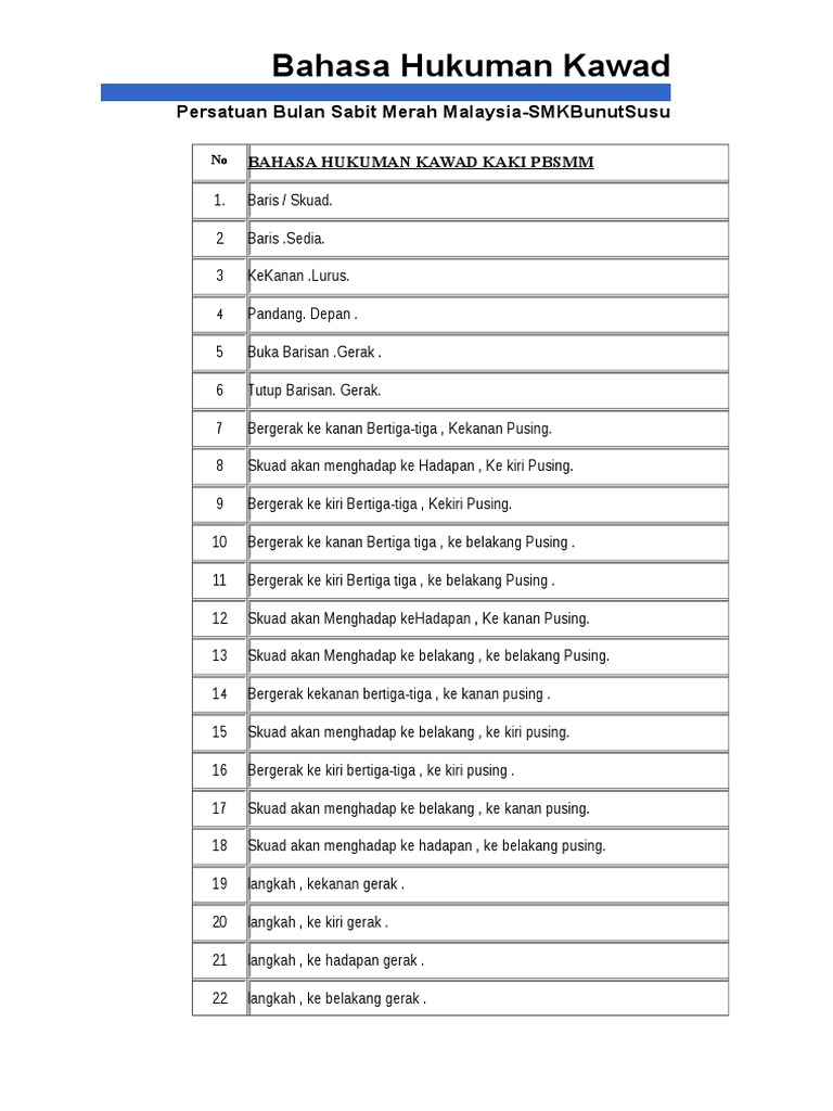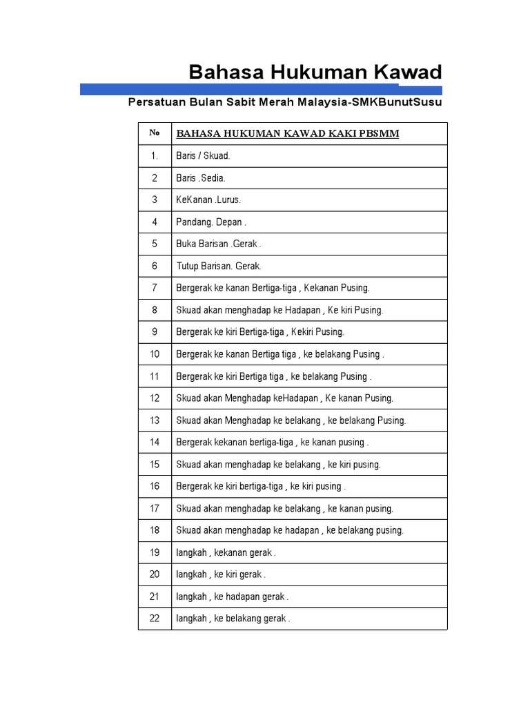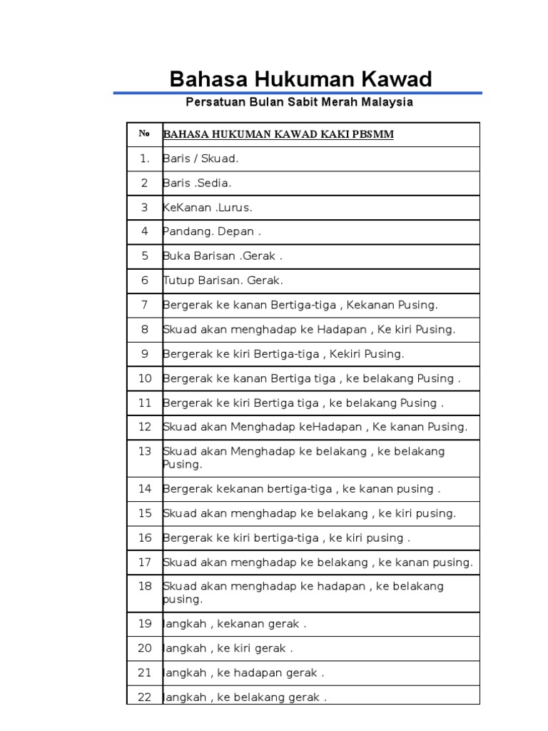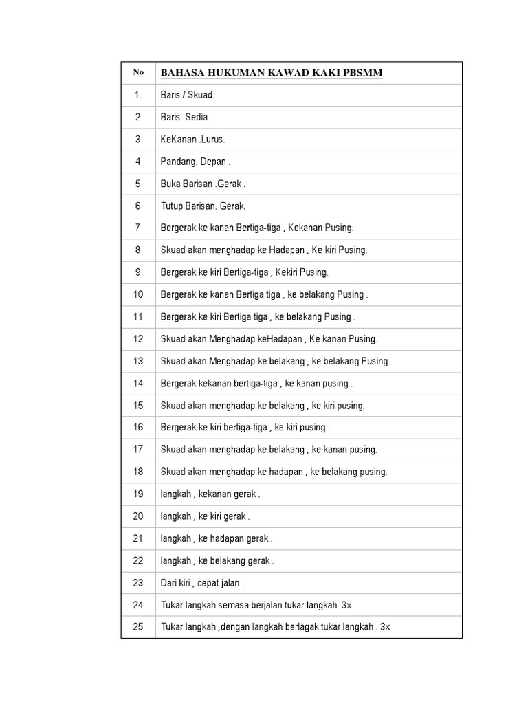 Bahasa hukuman kawad statik 1 sedia baris bariiiis sedia langkah langkah pergerakan dalam keadaan berdiri. Maju selepas hentak kaki maju atas kaki kanan 23. 1 6 langkah ke belakang arahan kawad.