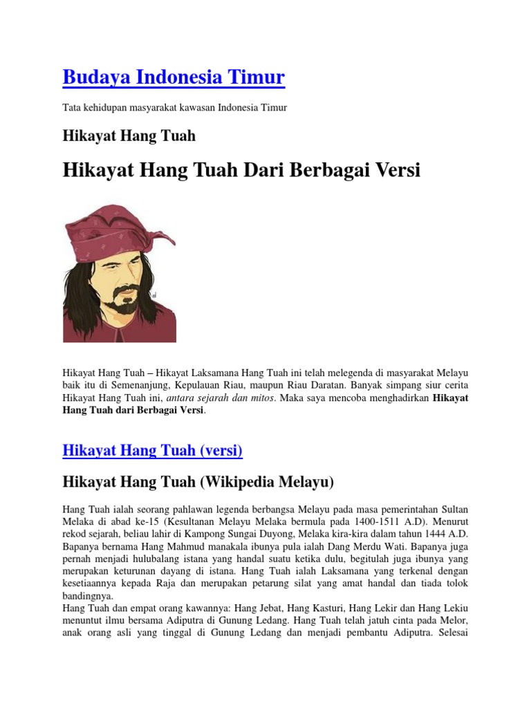 Hang tuah is held in the highest regard even in present day malay culture and is arguably the most well known and. Suatu hari hang tuah mengusulkan pada keempat sahabatnya untuk pergi berlayar dan merantau bersama sama. Dulu melalui hikayat kita hanya mendengar hang tuah lima bersaudara dan sorang lagi yang terkenal iaitu hang nadim.