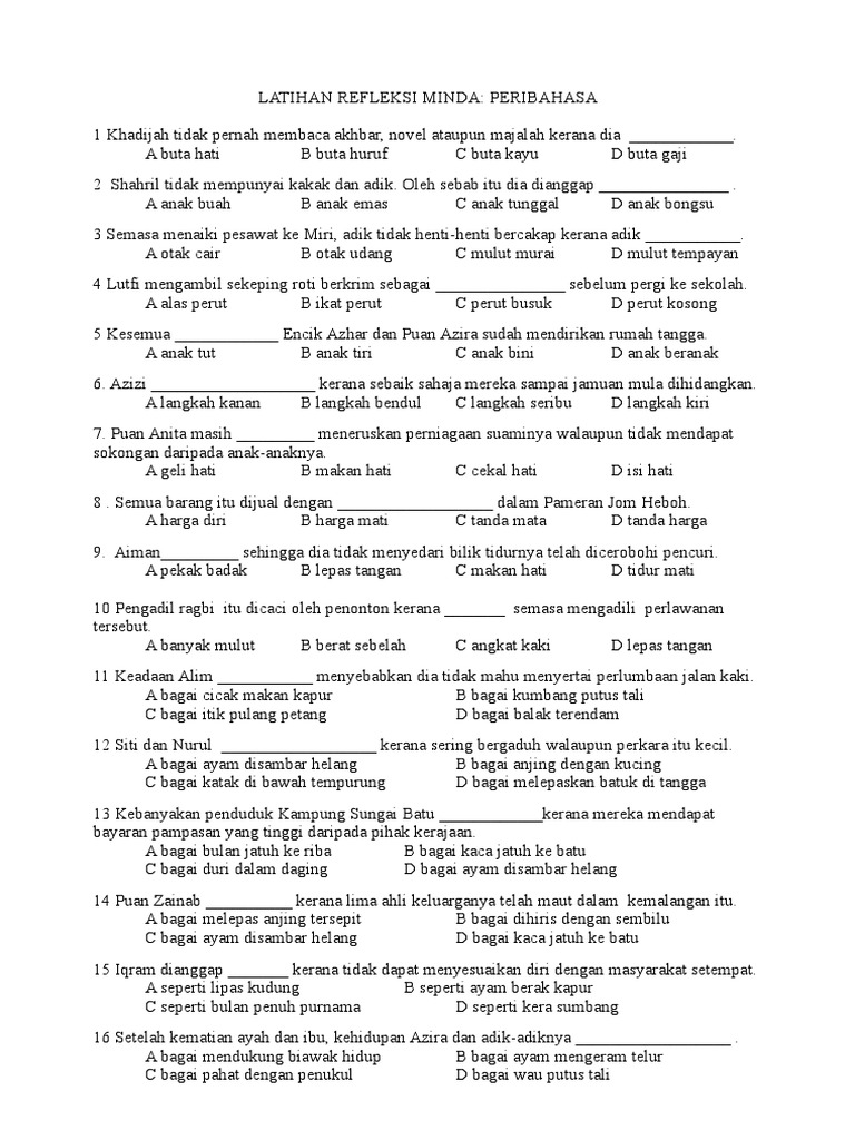 60 Soalan Peribahasa