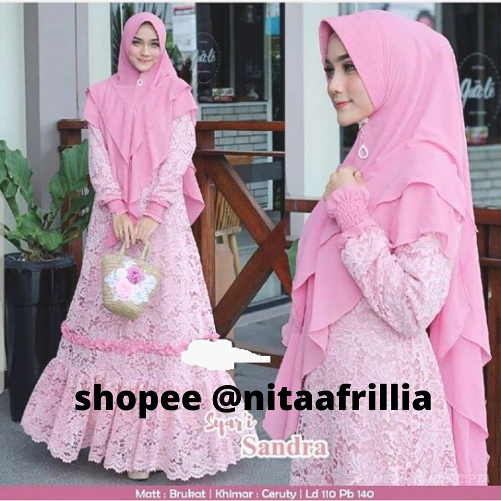 Gamis Sandra Brokat Set Khimar Bahan Ceruty Babydoll Baju Muslim Brukat Untuk Orang Gemuk Big Size Shopee Indonesia
