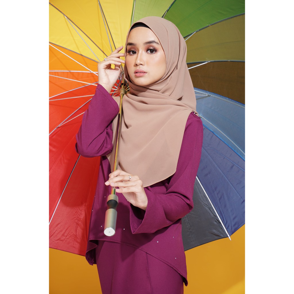 Baju kurung riau berwarna plain ini mempunyai bentuk yang sama dengan baju kurung pahang kembang payung kerana ianya kecil di bahagian pinggang dan mengembang di bahagian punggung.