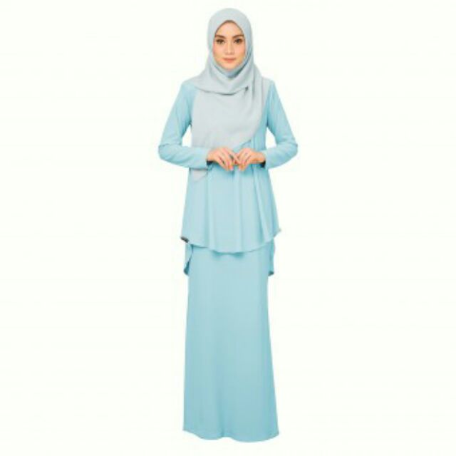 Baju Kurung Murah Zero Iron Sabella Light Blue Saiz Kecil Dan Saiz Besar Shopee Malaysia