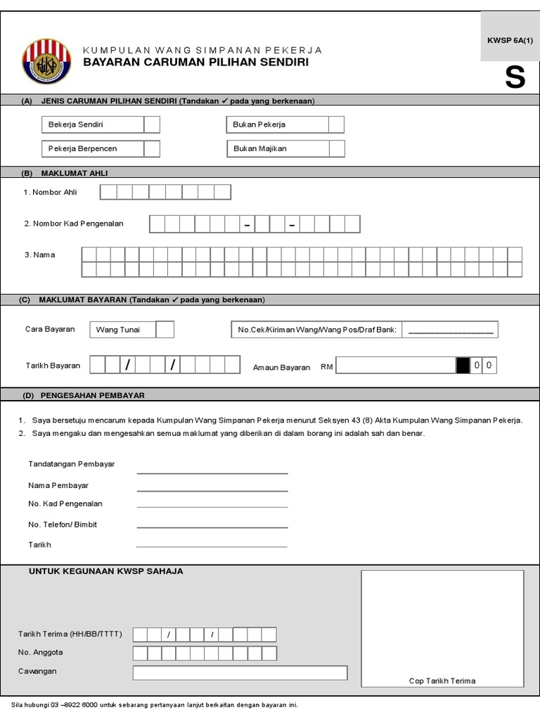 Pembayaran caruman boleh dibuat secara tahunan atau bulanan. Kwsp 6a1 borang caruman pilihan sendiri copy.
