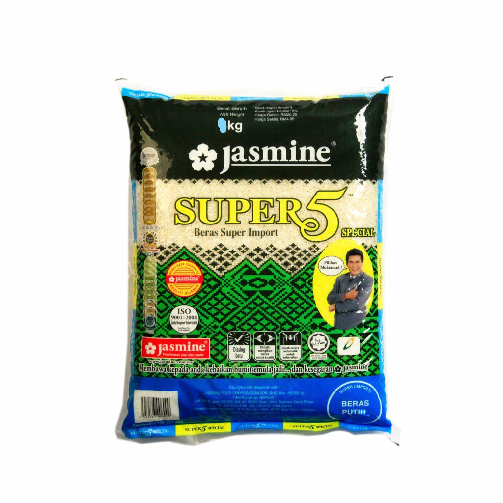 Beras jasmine super 5. They are processed from padi stocks sourced through jasmine s own mill as well as from other rice millers. Beras jasmin super 5 tambah kegemaran. Rm17 00 5 kg.