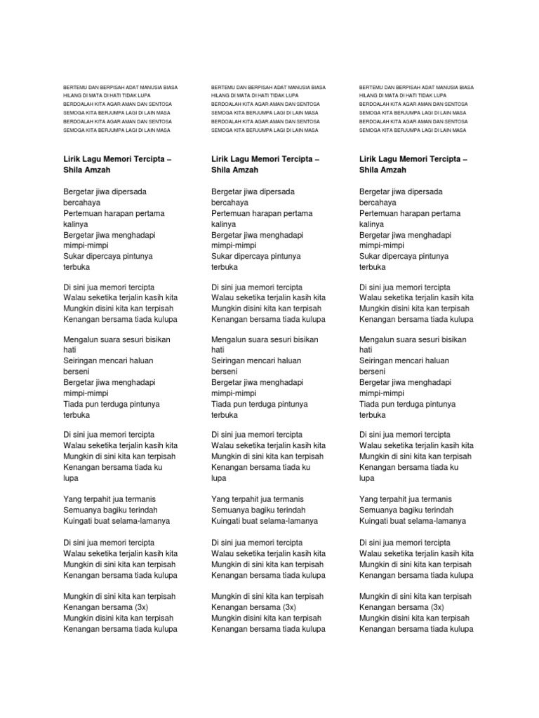 Bertemu dan berpisah adat manusia biasa lirik. Diari sekolah tedi lirik lagu. Anda mungkin menyukai siaran ini. Lirik lagu kerja kerja kerja aboi.