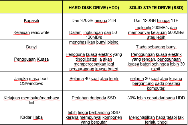 Dan pada zaman yang lagi maju dan canggih ini ssd atau solid state drive juga boleh menjadi pilihan sebagai alternatif kepada hdd. Ia menyimpan data dalam keadaan yang berterusan walaupun tiada kuasa dibekalkan. Mengetahui perbedaan ssd dan hdd sangat penting untuk diketahui terutama untuk kamu yang berencana upgrade laptop atau pc.