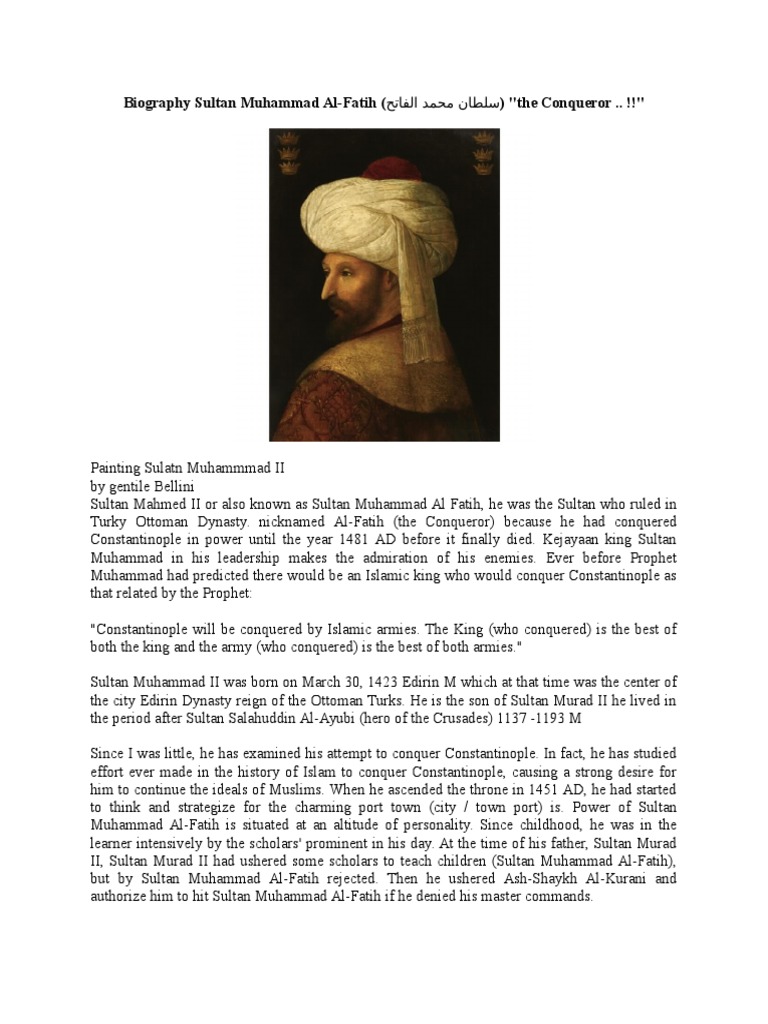 Baginda sultan muhammad al fateh dilahirkan pada 29 mac 1432 masihi di adrianapolis sempadan turki bulgaria. Peninggalannya yang paling terkenal adalah masjid sultan muhammad ii dan jami abu ayyub al anshari. Wafatnya sang penakluk.