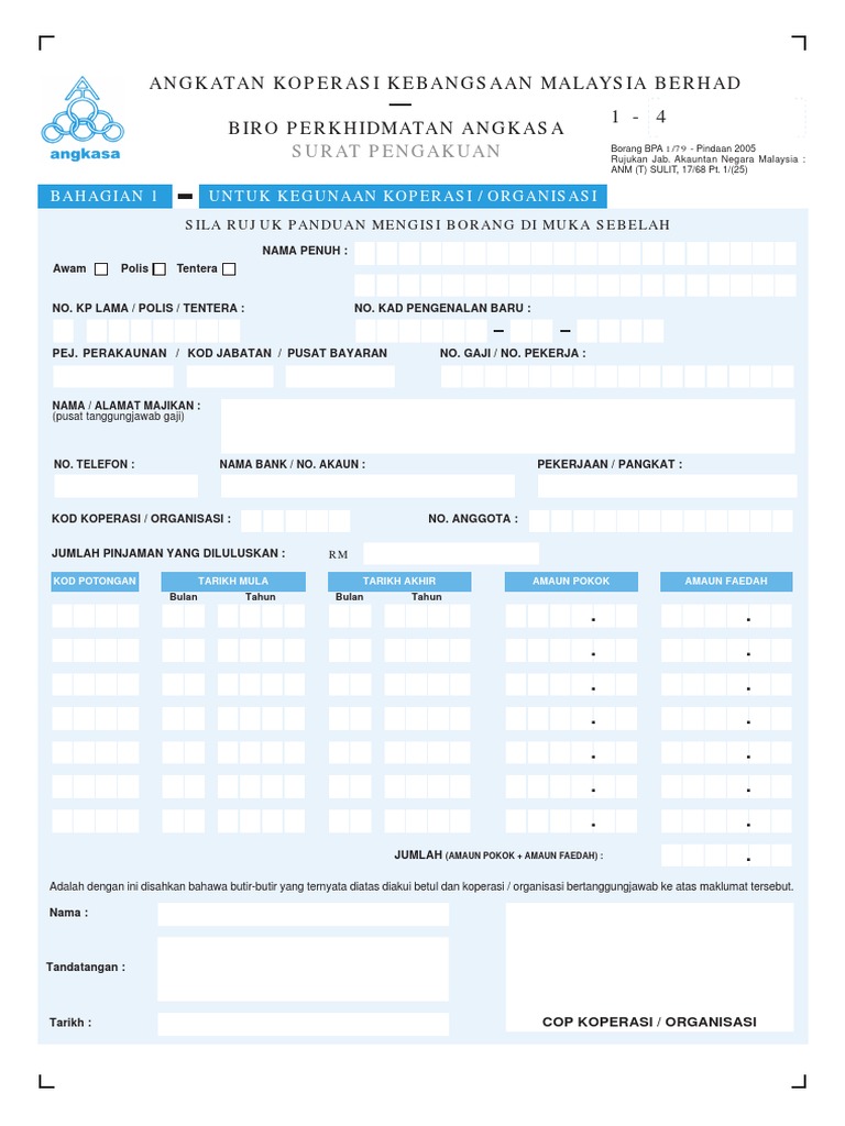 O Borang Bpa 1 79 Angkasa Angkatan Koperasi Kebangsaan Malaysia Berhad 1 1200293243 Biro Perkhidmatan