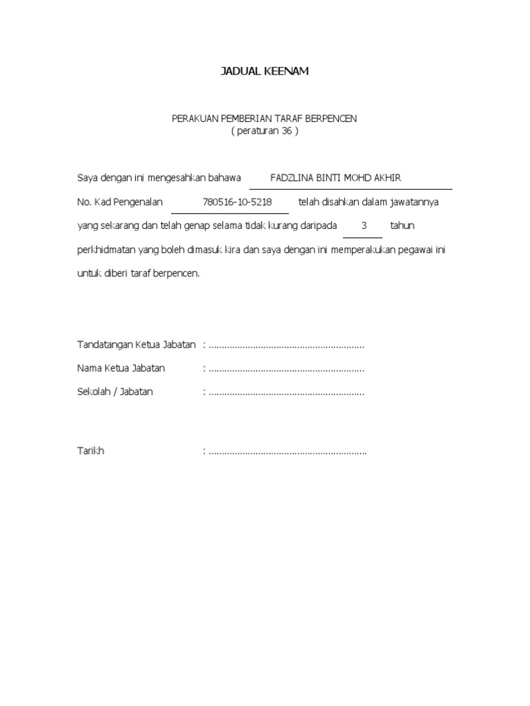 Perakuan Pemberian Taraf Berpencen Bagi Badan Badan Ini Hendaklah Dihantar Melalui Ketua Jabatan Masing Masing B Satu Salinan Kad Pengenalan Hendaklah Disertakan Bersama Sama
