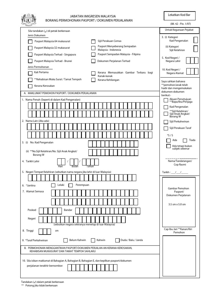 Jabatan Imigresen Malaysia Borang Permohonan Pasport Dokumen Perjalanan