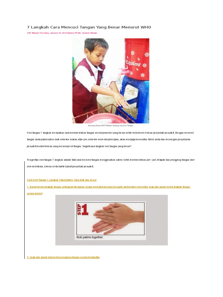 7 Langkah Cara Mencuci Tangan Yang Benar Menurut Who Sdit Madani Tulang Bawang Barat
