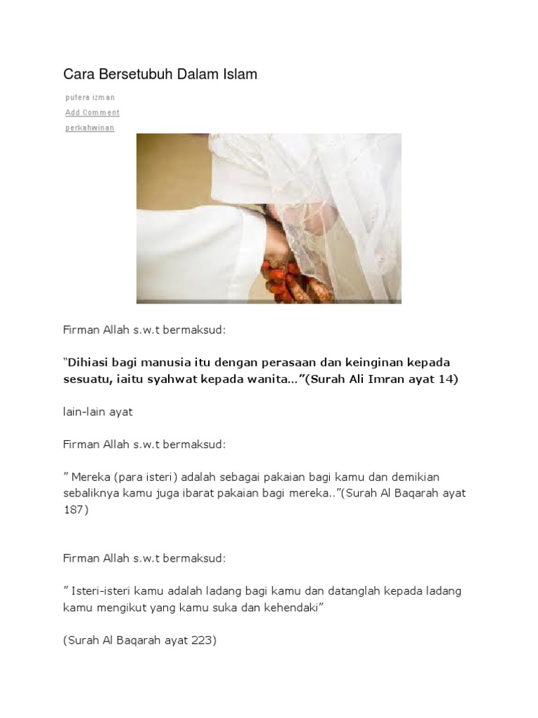 Sehingga tak menyimpang dengan tuntunan alquran dan sunnah. 16 cara berjimak menurut islam dan dalilnya al quran dan al hadist mulai dari adab sunnah dan hal hal yang dilarang untuk dilakukan panduan lengkap bagi kamu yang baru memulai hidup sebagai pasangan suami istri agar tetap berada di jalurnya. Senggama harus pakai penutup.