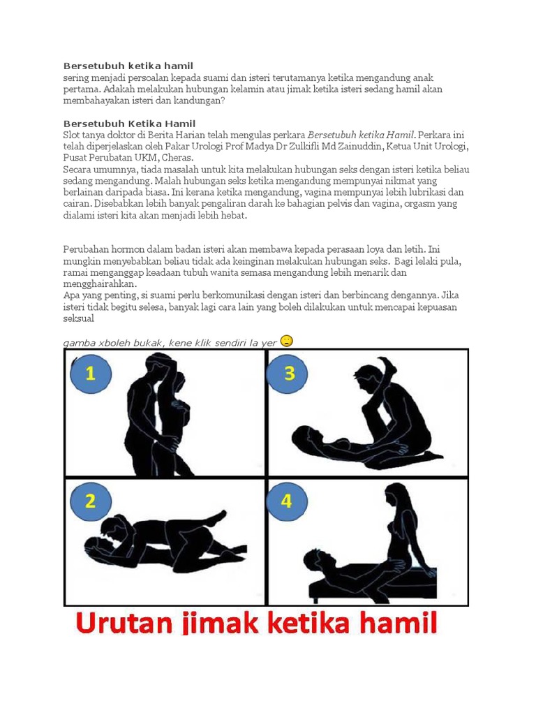 Cara bersetubuh ketika hamil. Kajian telah membuktikan yang melakukan seks semasa hamil tidak dikaitkan dengan kelahiran pramatang jika kehamilan itu sihat dan normal. Cara bersetubuh semasa hamil. Melakukan seks semasa hamil mungkin baik bagi hubungan anda dan suami pada masa kini dan selepas kehadiran bayi.