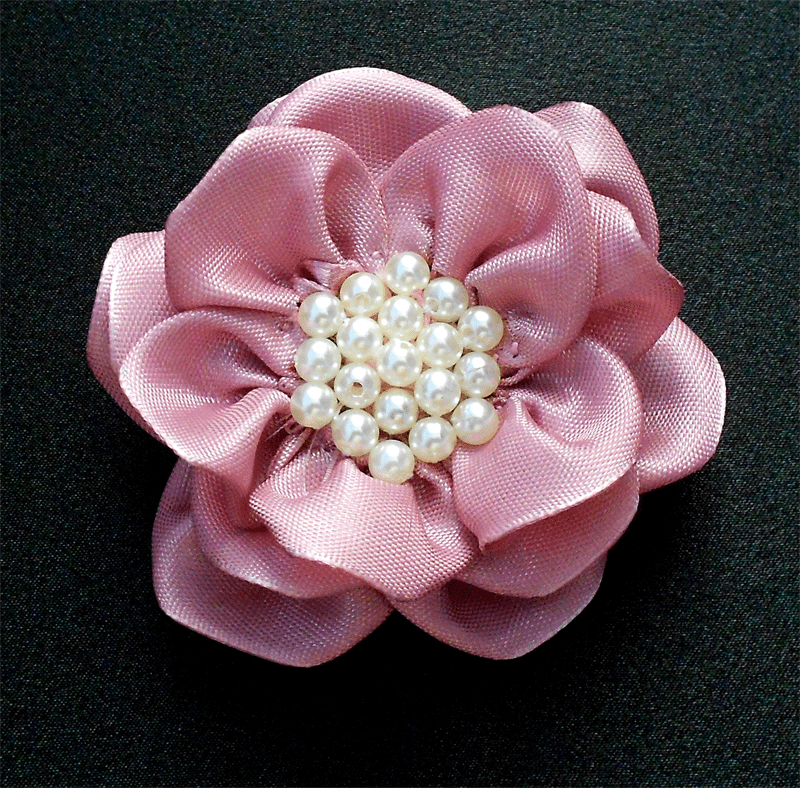 My Sewing Satin Ribbon Brooch With Decorative Beads