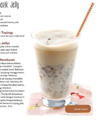 Cara buat teh tarik jelly. 5 sdm gula pasir. Didihkan 1 liter air dengan teh tubruk. Ada rasa pengen bikin sendiri gitu.