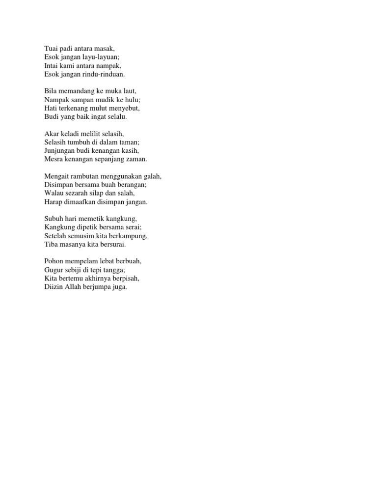 Tuai Padi Antara Masak Esok Jangan Layu Layuan Intai Kami Antara Nampak Esok Jangan Rindu Rinduan