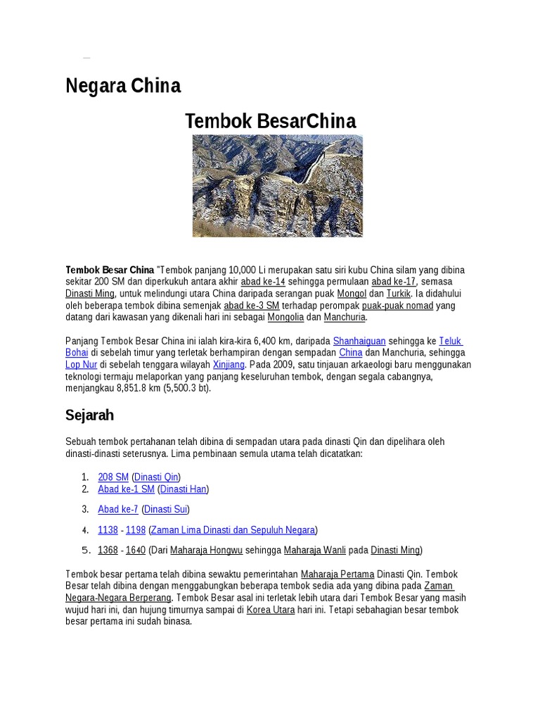 Tembok Besar China Docx Sejarah Dan Pengenalan Tembok Besar China Dinasti Chou Membina Tembok Besar China Tembok Ini Juga Dikenali Sebagai Great Wall Course Hero