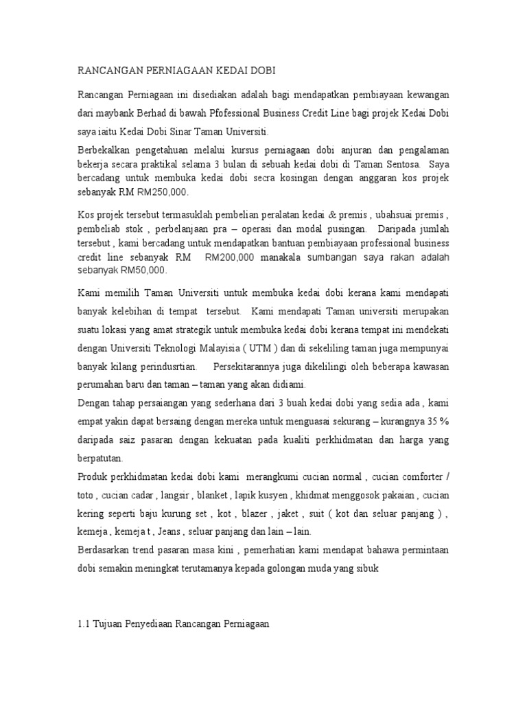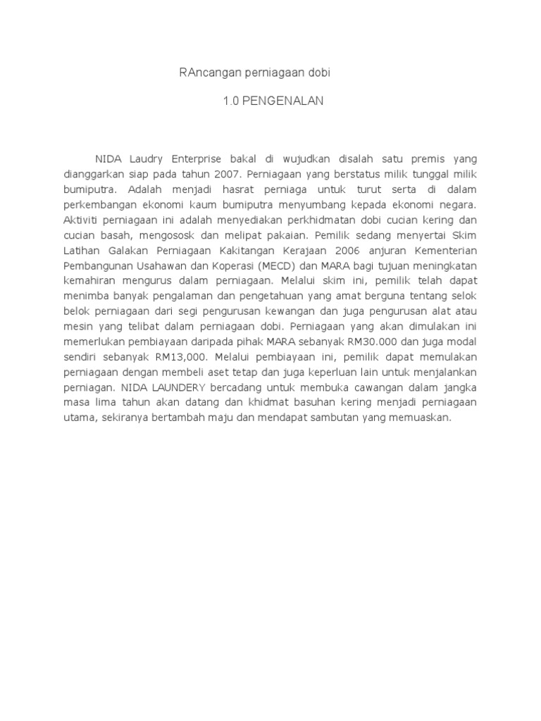 Tujuan rancangan perniagaan dobi. Hagemaru let s try merupakan perniagaan milik perkongsian yang didaftarkan pada awal bulan april 2012 bagi menjalankan aktiviti katering disekitar wakaf bharu kelantan dan bandar bandar sekitarnya. Kakitangan rancangan perniagaan mendedahkan kakitangan syarikat dengan arah tujuan syarikat oleh itu kakitangan mempunyai matlamat yang jelas untuk. Spa beauty sdn bhd is a dor to door d2d spa and massage service provider.