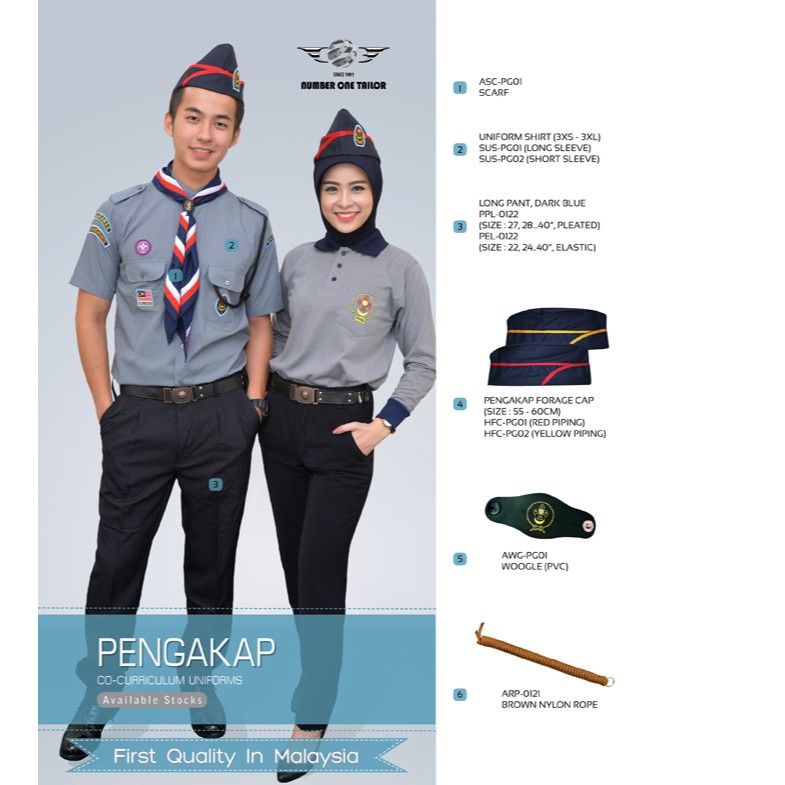Dx uniform 1164 305v 134 jalan jejaka maluri 55100 batu 9 cheras wilayah persekutuan kuala lumpur phone. Pengakap kelana pengakap raja dll semua pangkat dirizabkan mengekhaskan untuk guru sahaja. A junior scout s uniform consists of a short sleeve girls wear long sleeves grey shirt with two pockets with buttons on the left and right breast the official neckerchief the forage cap navy blue pants the official bronze belt navy blue socks and black canvas shoes with laces.