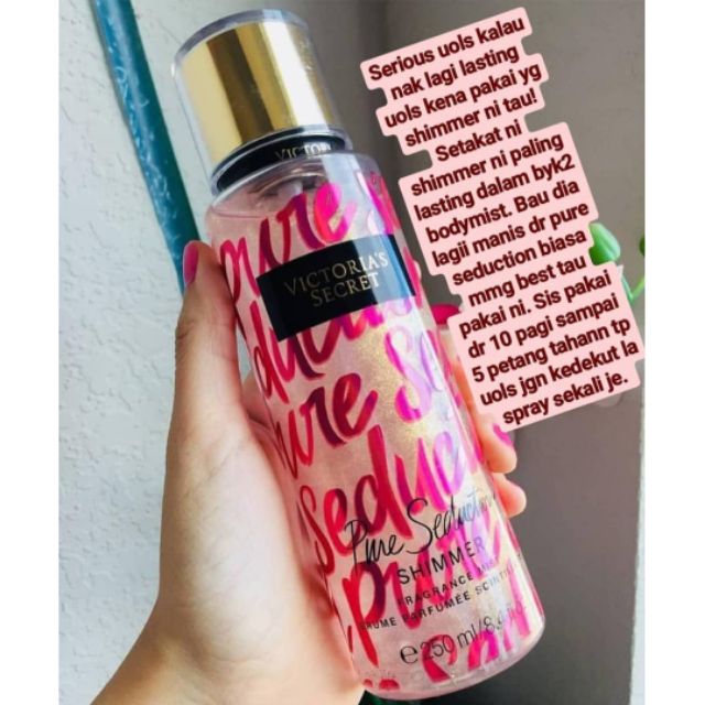 Body mist cocok digunakan dalam situasi apapun karena aroma wanginya yang lebih lembut daripada parfum. Sebenarnya aku tau awal lagi yang secret victoria ada sale sebab aku ternampak post kt page aman central pada pukul 9 30 malam hari jumaat. Aroma wangi yang dihasilkan dari parfum ini memang begitu semerbak sehingga bisa menguasai semua ruangan di mana anda berada.