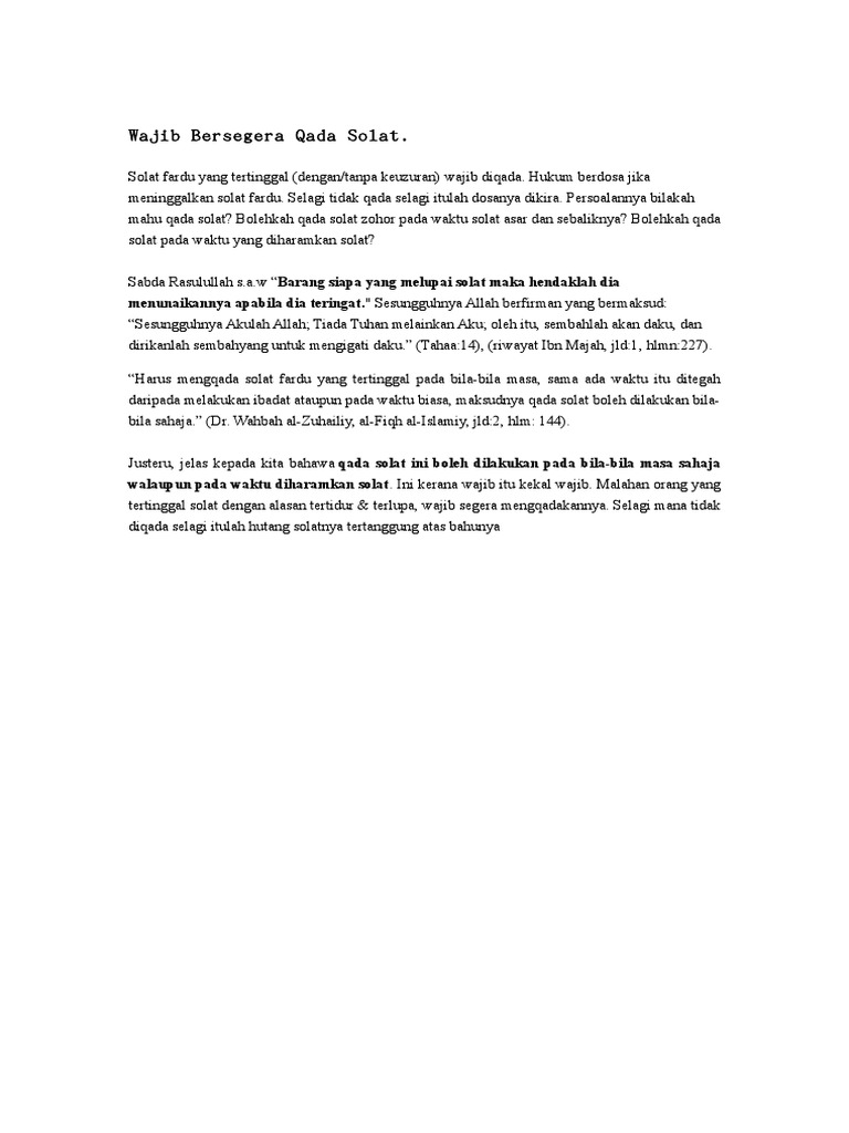 Solat Qada Di Waktu Haram Mso
