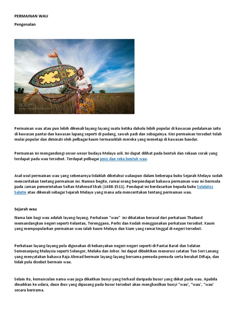Permainan Tradisional Wau Docx 1 Pengenalan Permainan Wau Atau Pun Lebih Dikenali Layang Layang Suatu Ketika Dahulu Lebih Popular Di Kawasan Pedalaman Course Hero