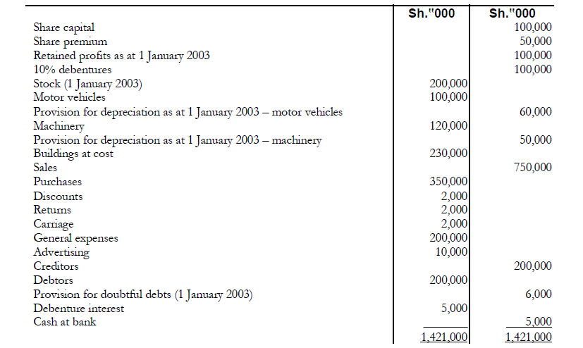 The Book Keeper Of Bidii Ltd Prepared The Following Trial Balance As At 31 December 2003
